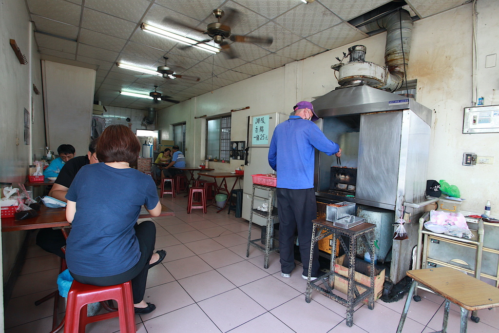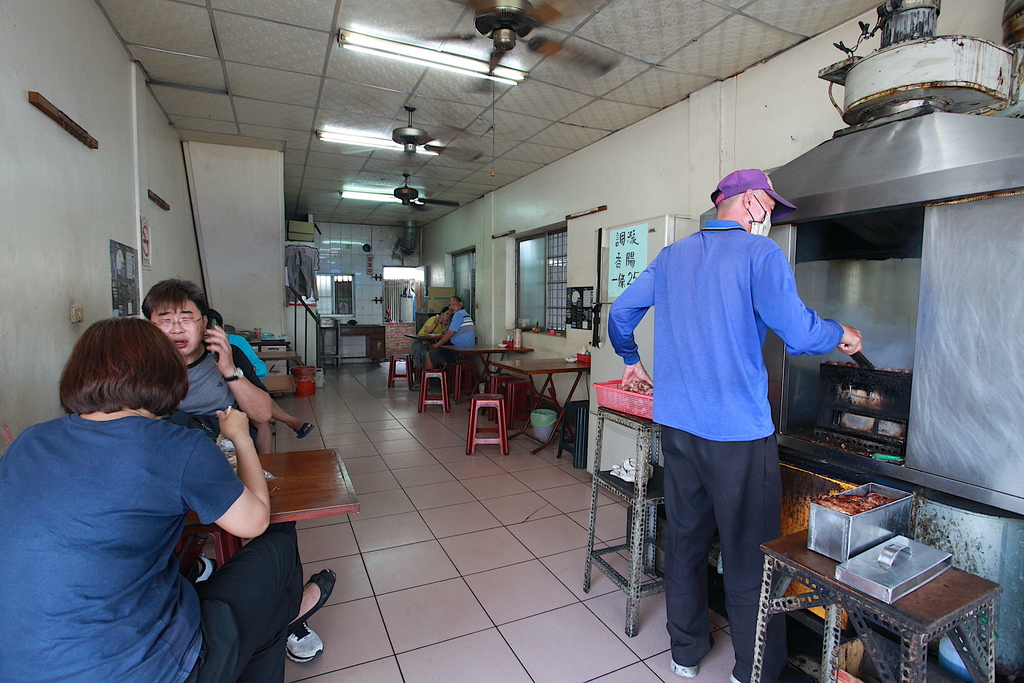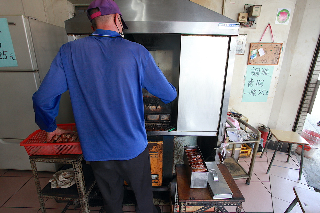 裡面這位老先生就負責炭烤香腸工作。