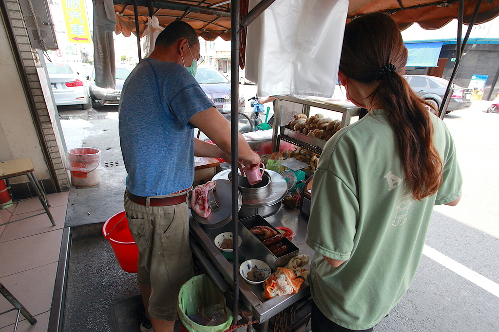 這位年輕女生負責低溫油炸黑輪,另外先生製作大腸與香腸,還有必點解渴的古早味紅茶,這裡沒有標示菜單供顧客參考,想知道餐點價錢就問服務員吧!