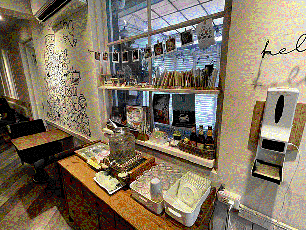 R-Star Coffee也有為大家放上店內貓貓們的介紹,餐具和飲水也採自助,點餐後可自行取用。