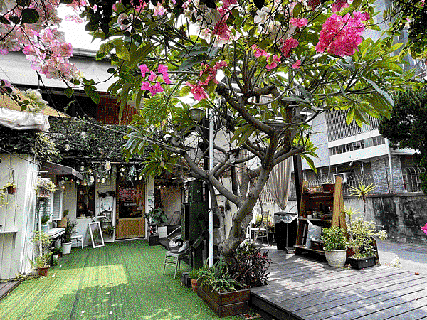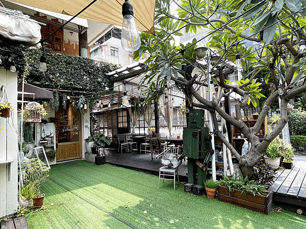 第一次踏進時,有著不小的庭院、草坪和戶外座位區,四周滿滿的植物,彷彿走進一座都市小叢林般的生意盎然~