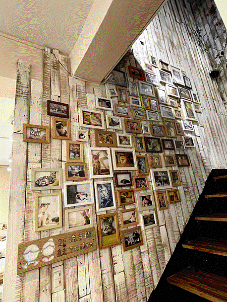 繼續步上二樓,沿途牆面也都是超療癒的各種貓貓們的生活照~