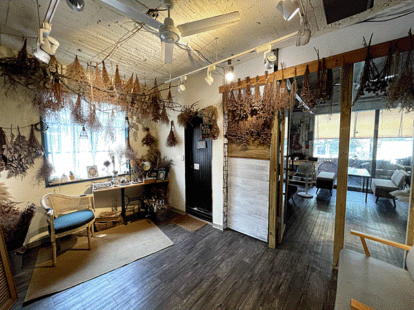 婚紗攝影工作室也好漂亮,復古感的擺設及色調搭上種類繁多的乾燥花草,意境十足,若需要使用化妝室也在二樓。