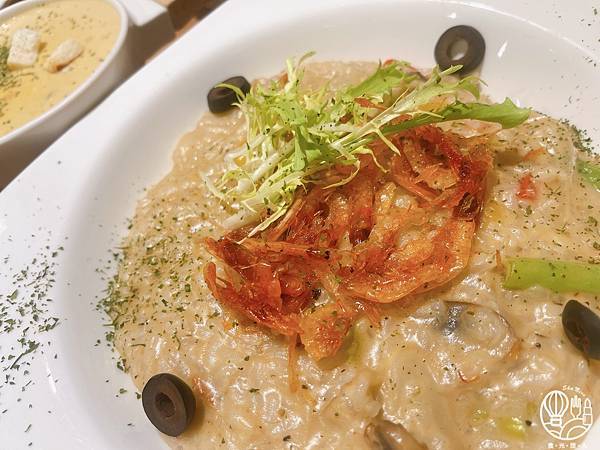 而R-Star Coffee的燉飯,認真覺得好好吃,濃郁白醬的醬汁搭上略偏硬的米粒,再跟著上頭酥酥脆脆的櫻花蝦一起吃,口口都超美味~