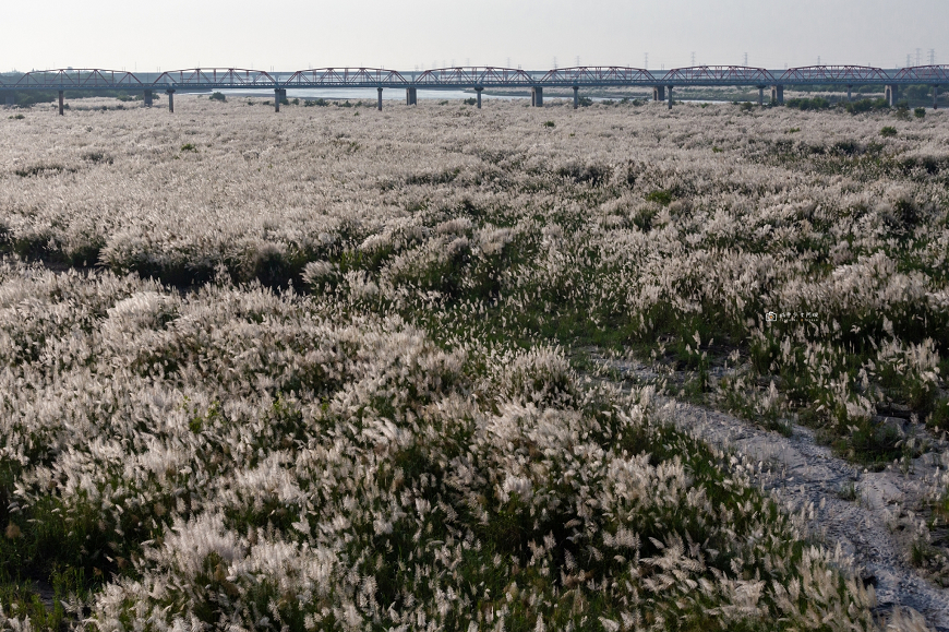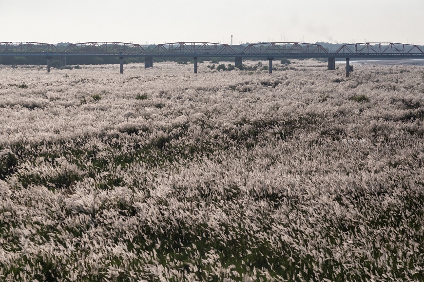 可惜今年兩岸邊的雜草樹木叢生,已高過溪畔的甜根子草,從堤防邊已幾乎拍不到甜根子草壯闊的感覺,所以前面阿璇才會推薦今年在大內橋上的角度會比較好