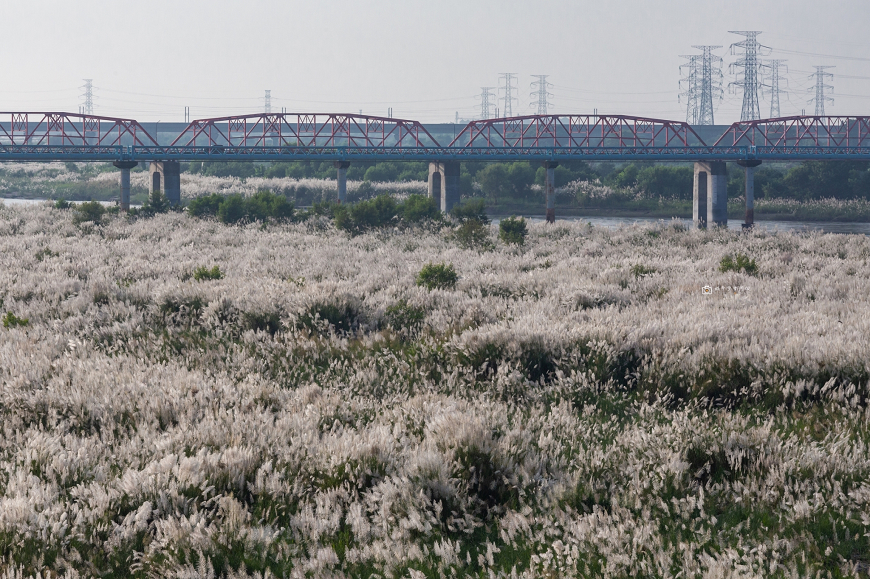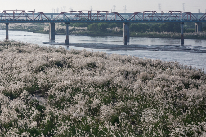 往年在堤防與甜根子草近距離互動取景(往年照)