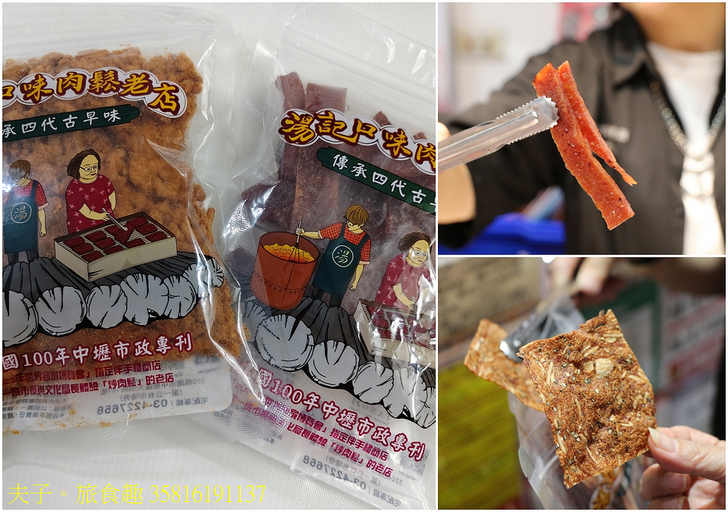 「湯記口味肉鬆」老店,在地深耕超過一甲子,目前已傳承到第四代,創業過程從清末民初第一代的挑擔販售茶葉茶與杏仁茶開始,到經營雜貨店 (榮昌行) 兼售菸酒、愛國獎券,直到 1960年代正式轉型為肉鬆肉乾專賣店,見證了中壢舊城區商圈的興衰。(照片:第三代老闆娘湯玟琪)