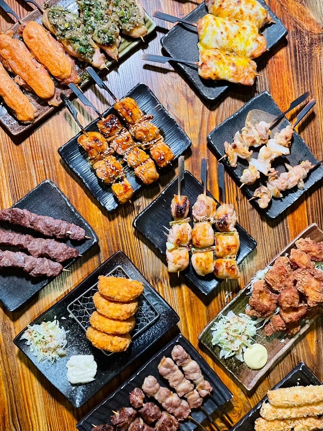 這裡除了日式燒烤之外,還提供關東煮、蓋飯等多樣選擇,菜單上價格清楚標示,點餐起來毫不費力。串燒的種類相當豐富,從牛、豬、雞到各式蔬菜串應有盡有,另外也有小食與涼拌菜,既能當作配菜,也非常適合下酒。飲品部分選擇同樣多元,不論是啤酒、氣泡飲還是果汁,都能和串燒完美搭配,吃起來格外對味。