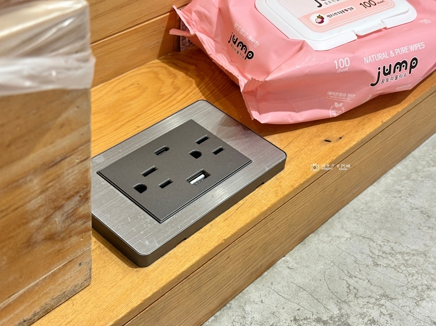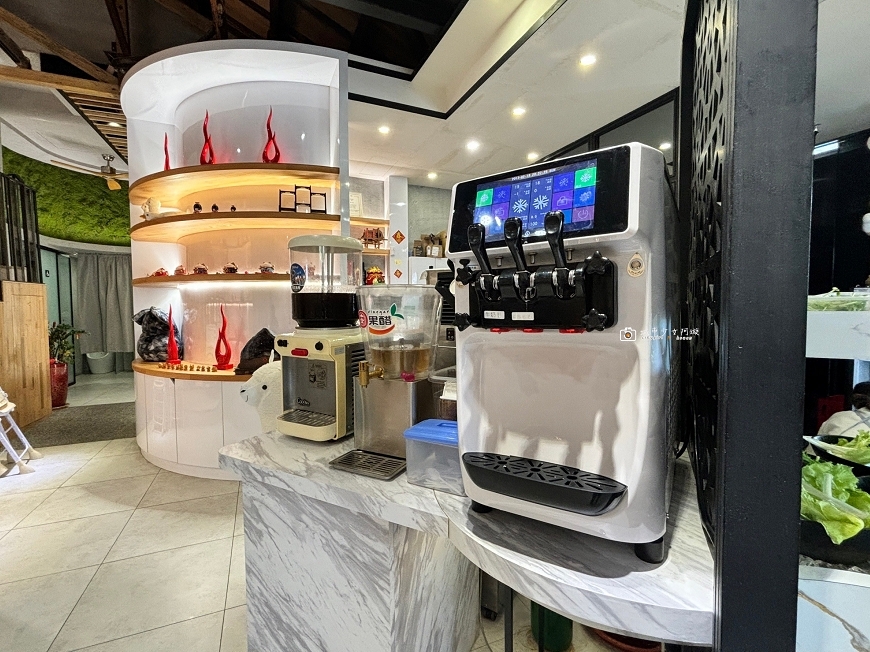 這裡採半自助式,茶水、醬料自己取用,中間吧檯區還有免費飲料(啤酒需另外付費)。貼心的是,每桌都配有電源插座和 USB 孔,用餐同時還能幫手機充電,超加分。