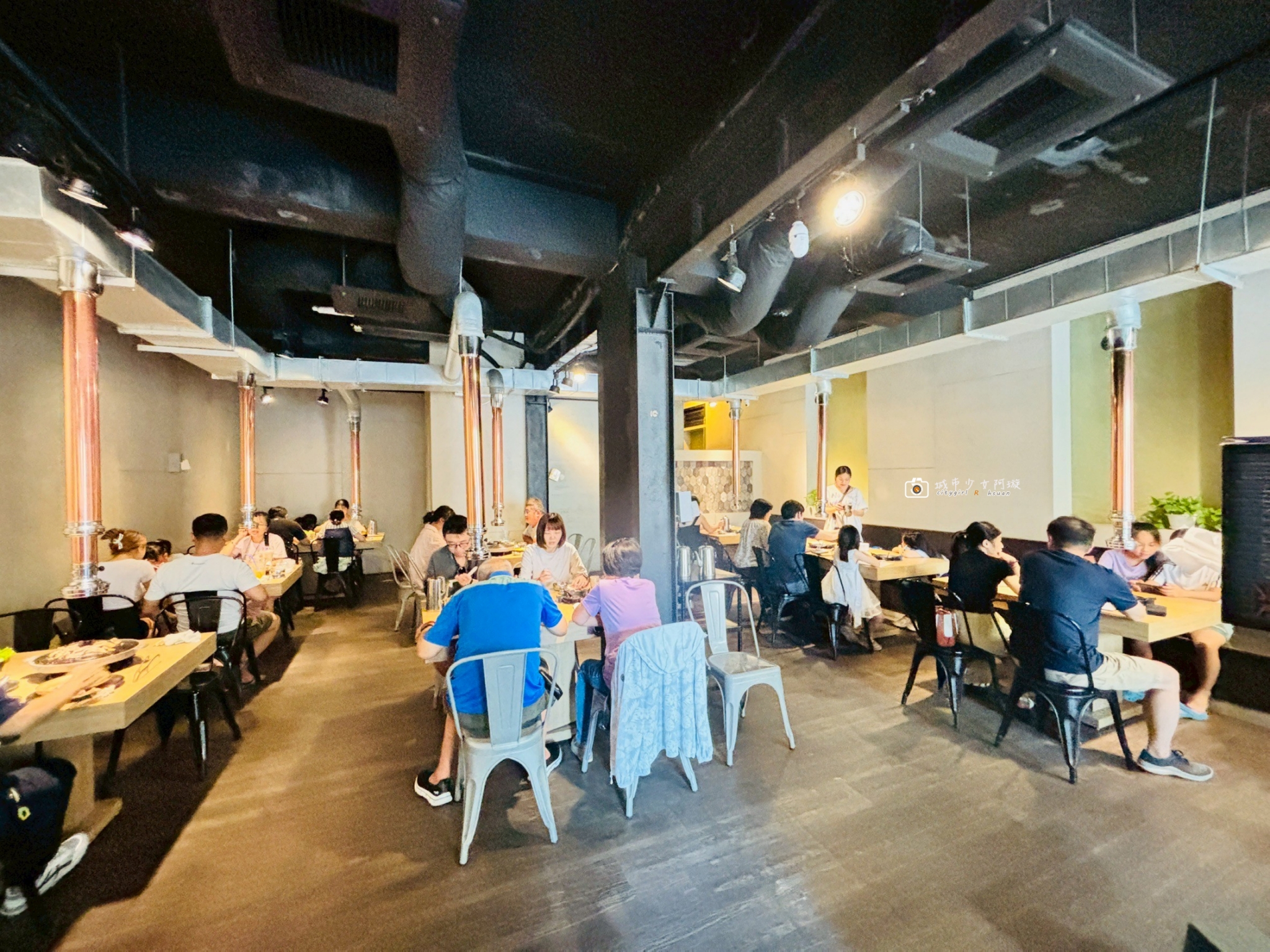 餐廳裏頭走一個工業風,桌與桌不會太擁擠,客人族群很廣,老少咸宜~很特別的是店裡完全沒有油煙味,這點實在非常難得,也是我們很常來的原因~