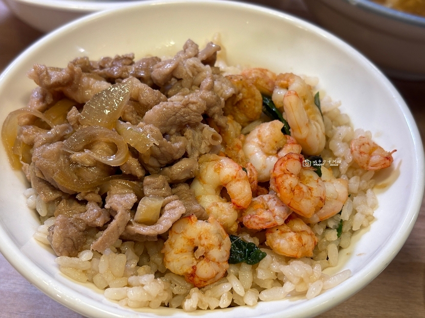 主角來啦~蝦仁飯的蝦仁是用臺南當地的新鮮火燒蝦,加上高湯及自製豬油拌炒,就是遠近馳名的蝦仁飯啦