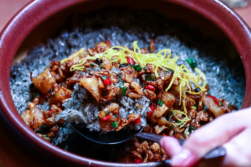 松露香米飯,不誇張才剛上桌,香氣就撲鼻而來,連容器都是採用水里蛇窯陶鍋,很用心呀