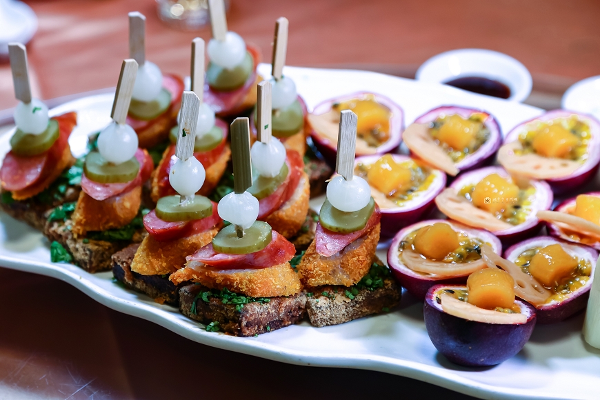 拼盤裡每一道都是採用當季的在地食材,盤子也很特別做成台灣造型,要讓我們從台灣頭吃到台灣尾的意思~超有趣的