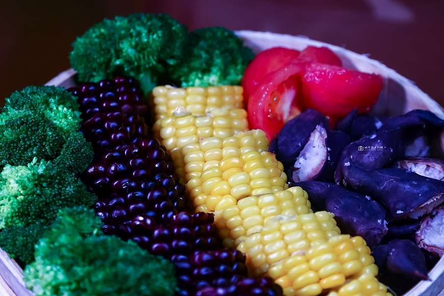 吃完重口味,馬上來道蒸蔬菜恰恰好,好難得可以看到菱角跟紫糯玉米,真的是充滿驚奇
