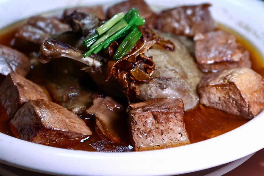 鴨香寶,整隻鴨採用南投在地的嫩薑及麻油下去燉煮,悶鴨的手法讓鴨肉軟嫩卻依舊帶有口感,一旁的板豆腐吸滿湯汁,嗑好幾塊都不嫌多