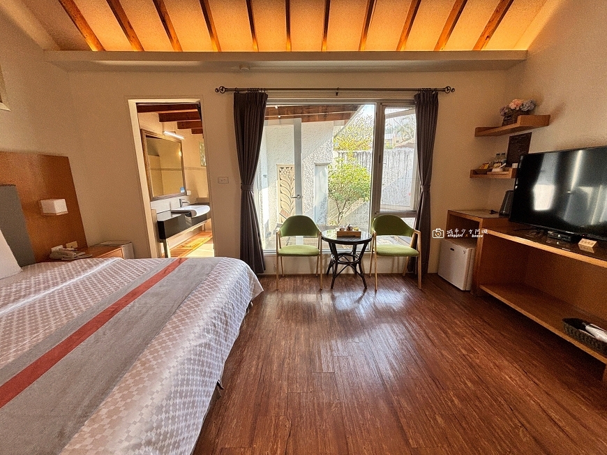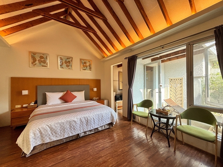 加大雙人床旁邊就有落地窗,能隨時看到專屬小庭園景色