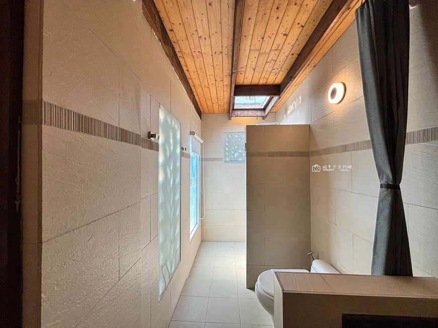 廁所與淋浴間兩者相鄰,還有天窗設計,不只採光好,如果天氣好晚上還能看星星