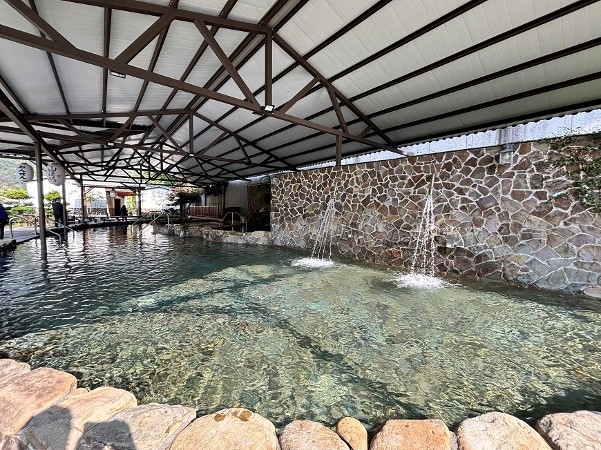 充滿日式風情的大眾池,四周群山環繞,荖濃溪蜿蜒流經其中,泡湯的同時,還可以飽覽壯麗風光~雙重享受