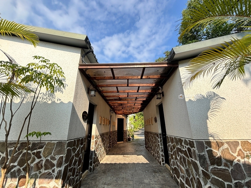 山澤居Villa位於高雄六龜的中正路上,地理位置非常方便,旁邊就是超商,但其實這裡只是入口,穿過神秘的竹林幽徑,裡頭別有洞天。