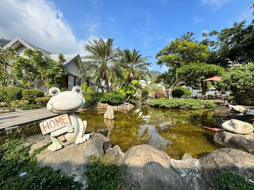 藍天白雲搭上日式庭園造景,擁抱大自然的感覺,一整個心曠神怡,還有一隻俏皮的大青蛙在歡迎我們來到他的家,很溫馨~