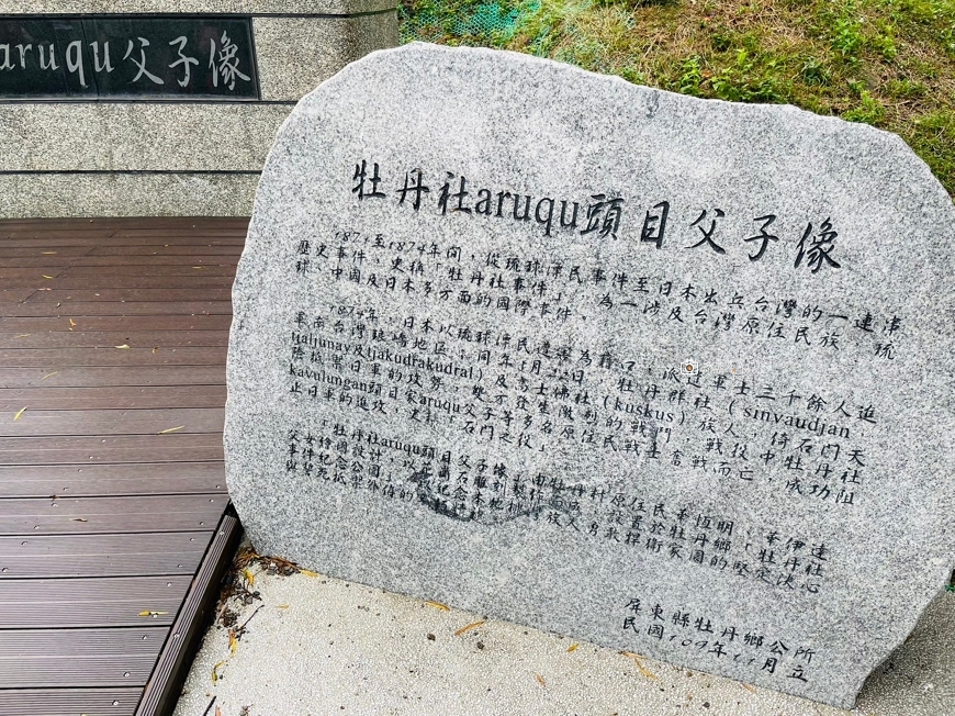 整個公園不算太大,跟著導覽路線走逛,我們在牡丹社頭目父子像前停留,看著介紹,逐漸回想起歷史事件的開端,《斯卡羅》劇中的畫面也一一浮現,看了劇集後有了印象,這回實地走訪,感受更加特別。