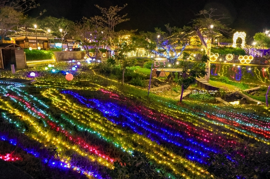 從制高點望下去,幾乎還原了當時日式溫泉村的風貌,四重溪溫泉公園變身一座美麗的不夜城!