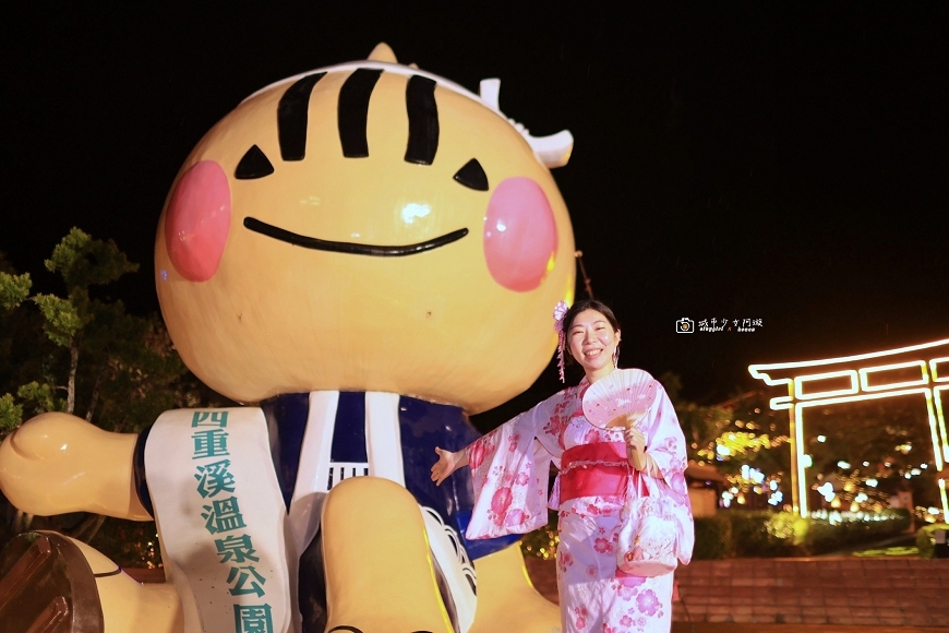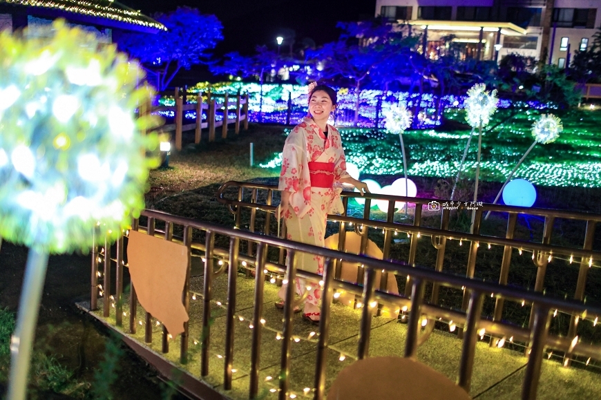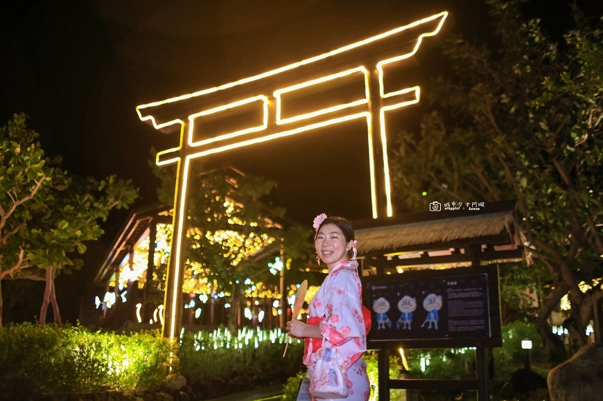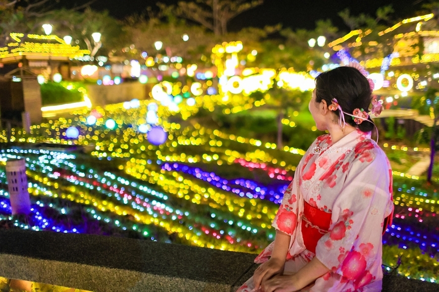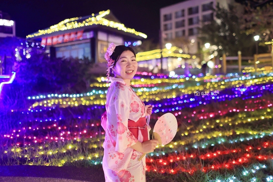 阿璇強烈推薦一定要租借和服,穿著漫遊溫泉公園,彷彿置身於日本的小村落,搭配夢幻燈海,走到哪都好拍,真的會拍不停啊,辛苦樂爸攝影師了XD