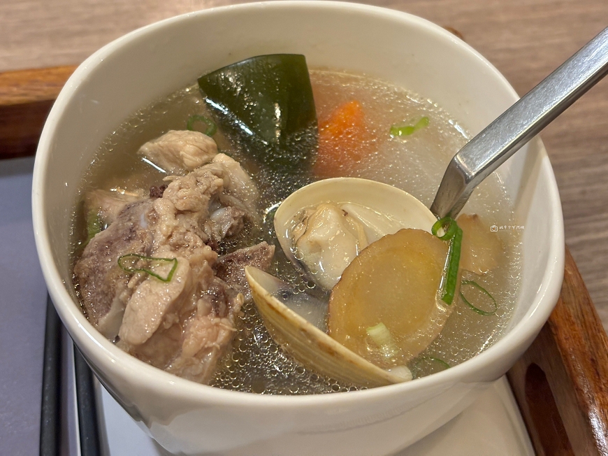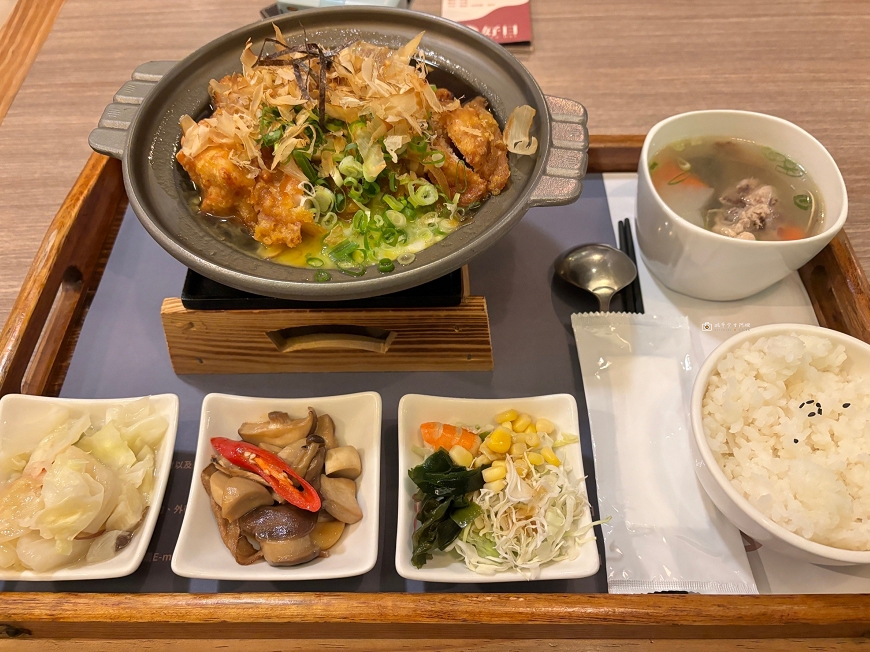 樂爸每次來都點一樣的日式照燒雞腿,有附三菜一湯,湯品裏頭料很多呢