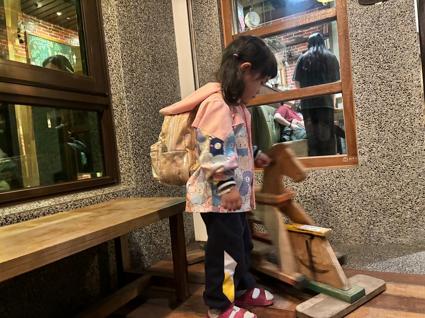 店門口有一隻小木馬可以給小孩們騎乘,應該是生意太好,太多人使用,這次來看到木馬感覺撐不久了QQ