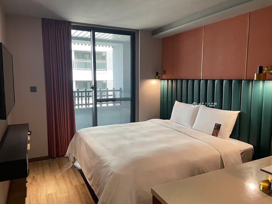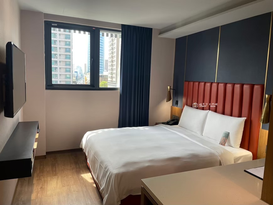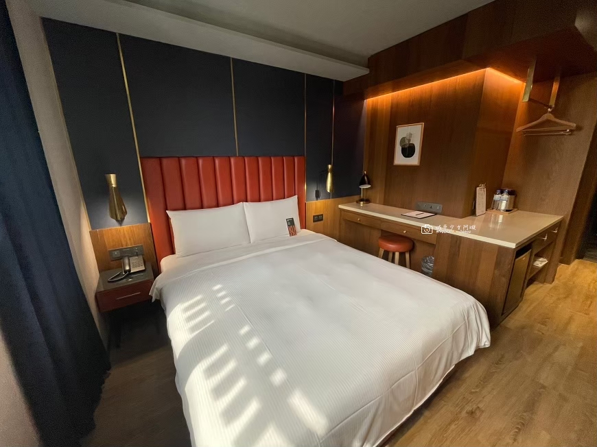 同場加映友人的舒適雙人房(有陽台),房內撞色設計使房間更顯文青活潑