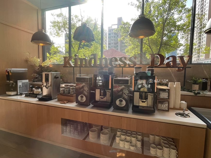 寬敞明亮的一樓公共空間是早餐、下午茶、晚餐的用餐地點,也很適合三五好友入住後在這裡洽談、放鬆,而康橋慢旅最大的特色就是提供24小時提供咖啡跟甜點,而且隨房卡附上飲料券可以兌換一瓶啤酒或無酒精的黑麥汁等瓶裝飲料。