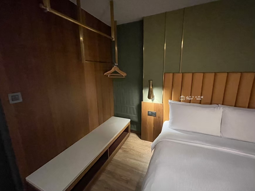 採用開放式衣架,下方則是行李台跟鞋櫃,還有一面非常大的全身鏡在門口處(超讚)。
