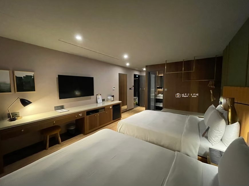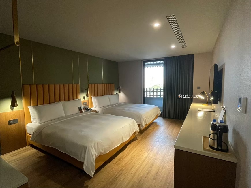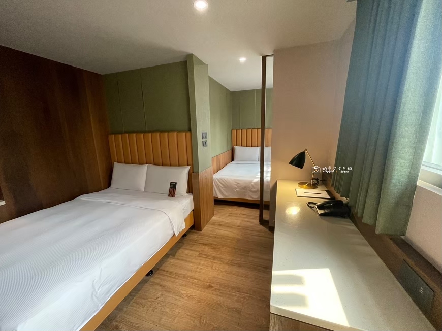 我們入住的是舒適四人房,房間很中規中矩,簡單舒適,而且左右兩側並沒有床頭櫃(兩床中間才有),視覺上增大空間感。