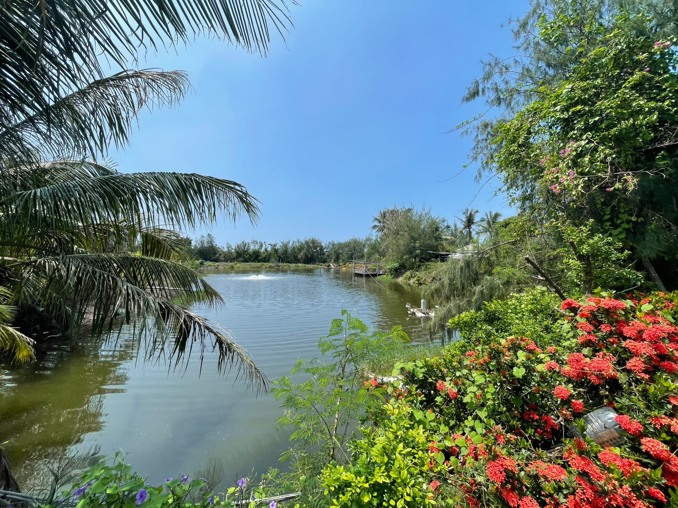 經過一座魚塭後,就快抵達餐廳門口啦