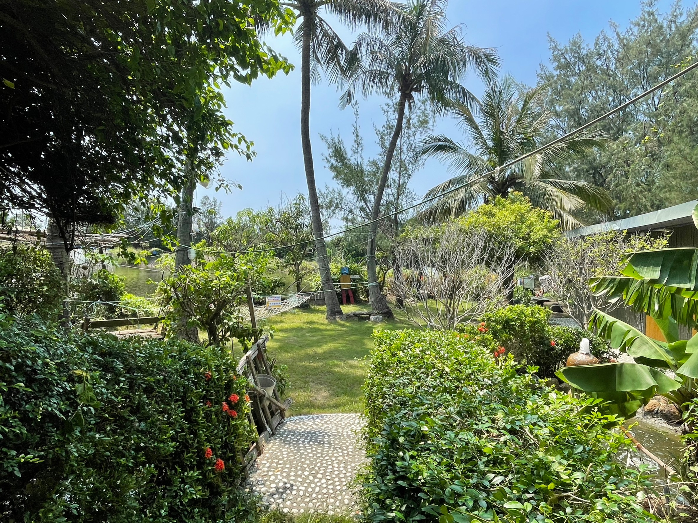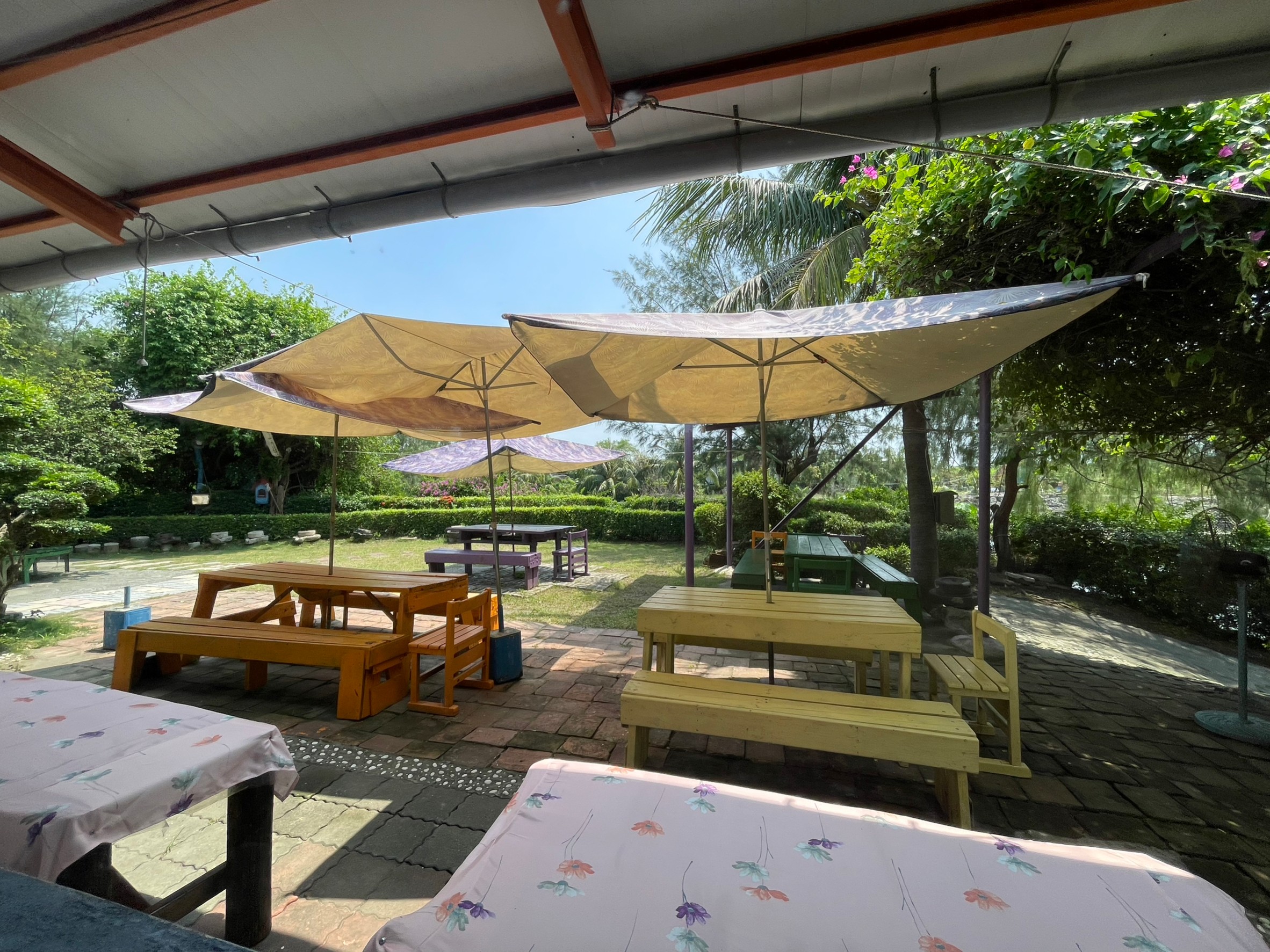 廁所在餐廳外頭,走去廁所路上發現有一區清幽的空間,如果太陽沒那麼大,在這裡走走應該很悠閒
