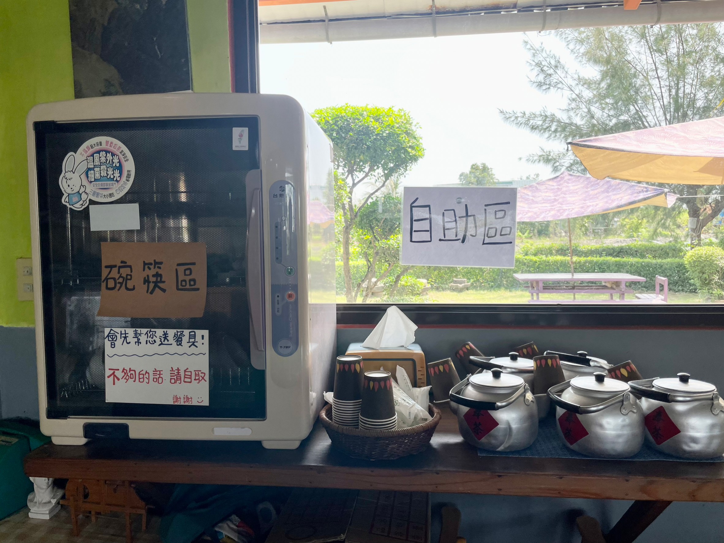 餐具和茶水採自助式取用