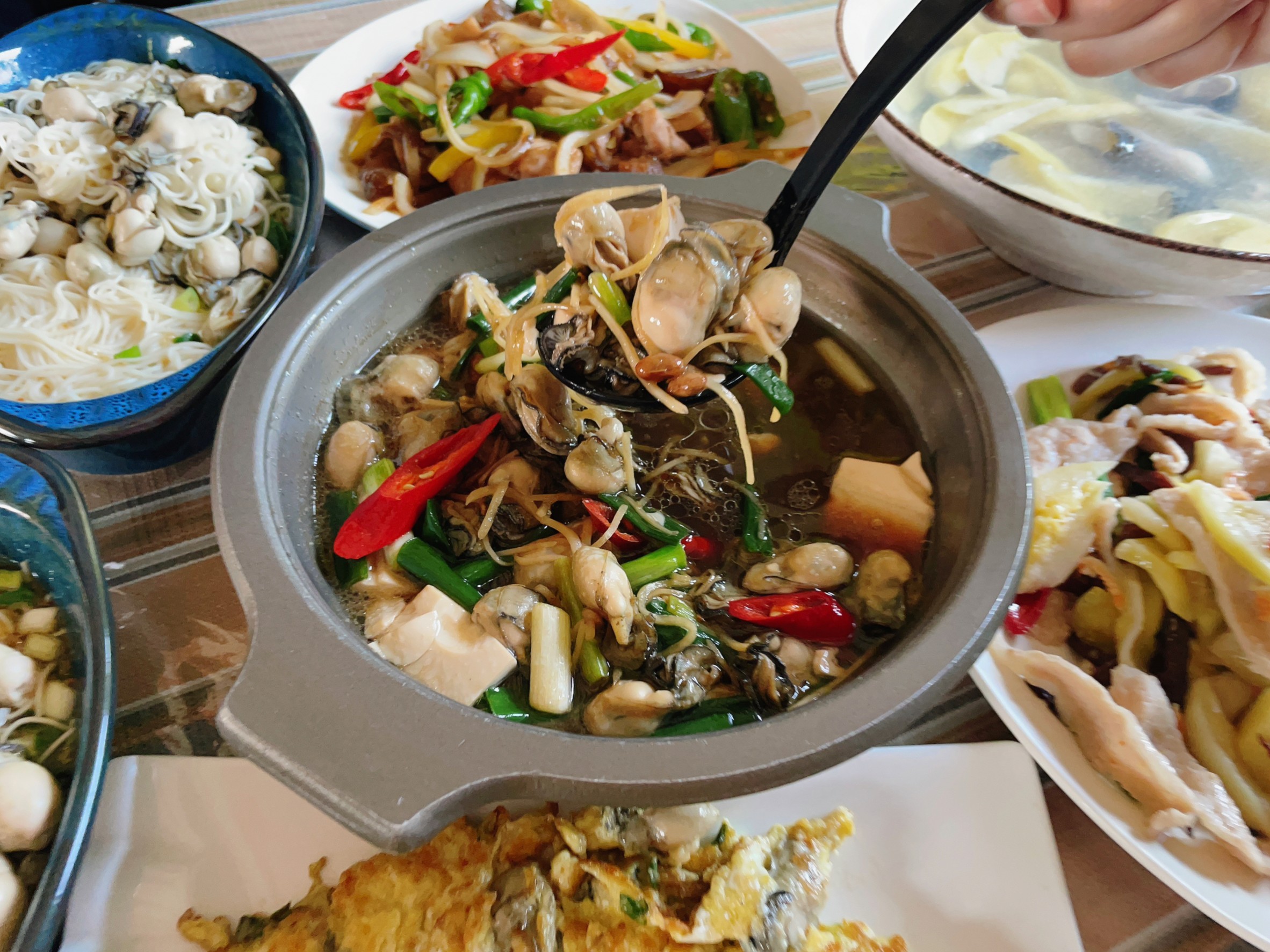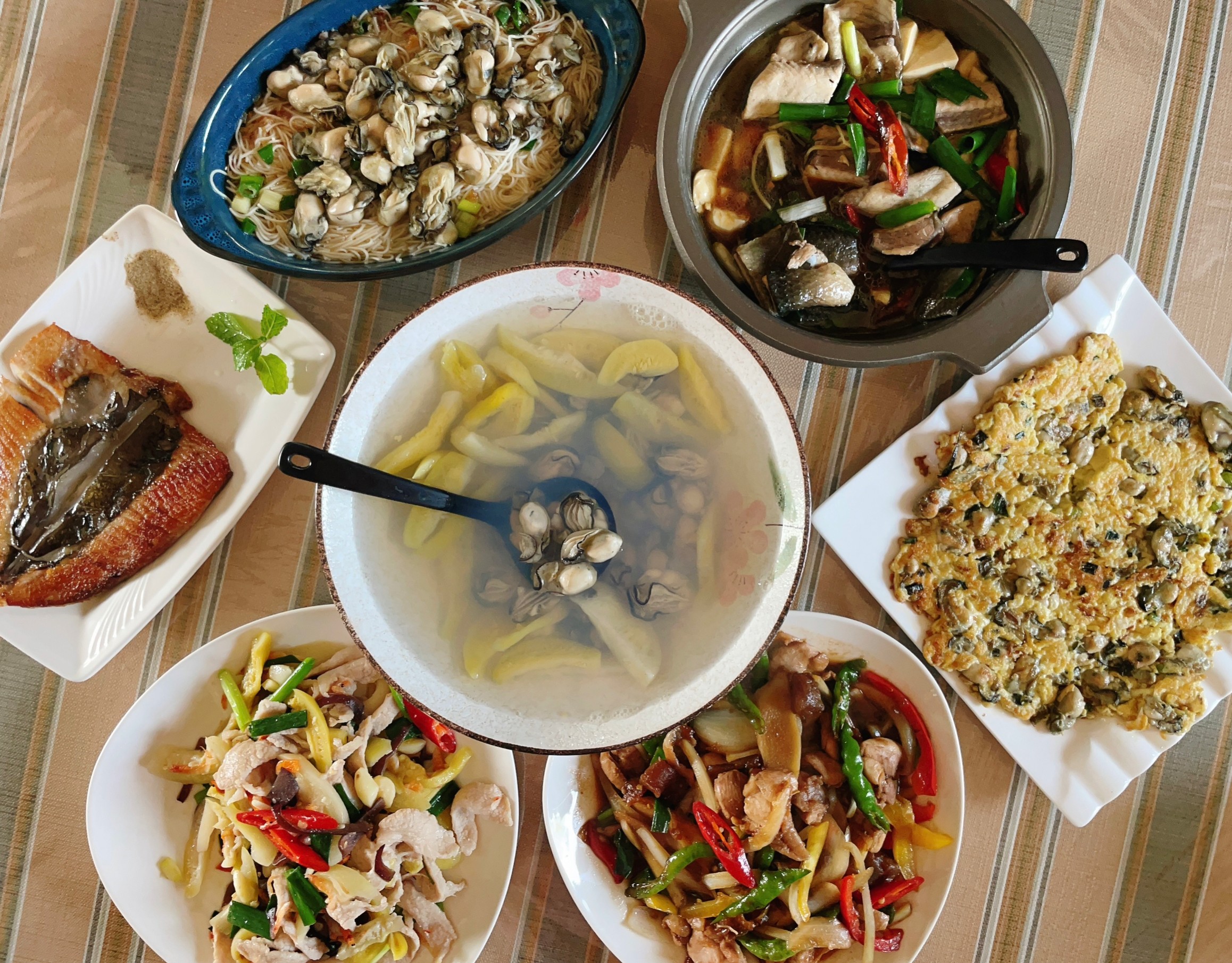 今天我們四個人點了五菜一湯,還有蚵仔麵線