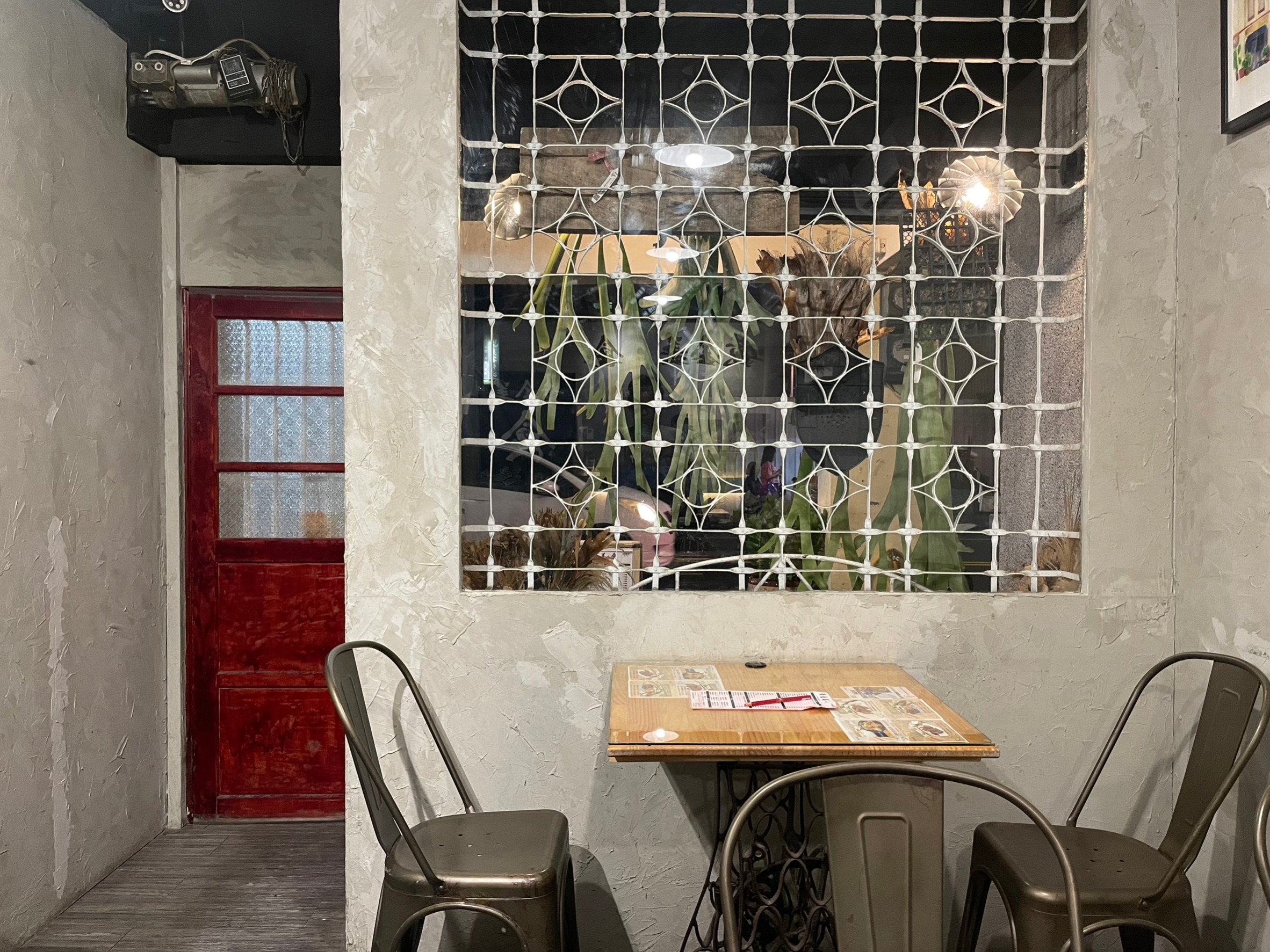 阿璇很喜歡在鐵花窗旁的這區座位,這畫面超美!