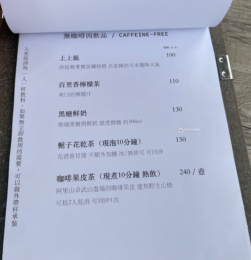 仙人指路小小一間,但提供的餐點其實還不算少,飲品除了各種咖啡、茶類、花茶,還有一些輕食可以享用~味道都還不賴