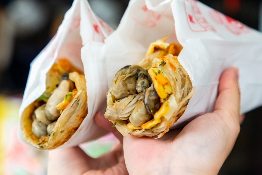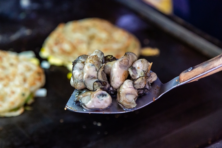 蚵仔鋪上抓餅滋滋作響,看起來實在很欠吃