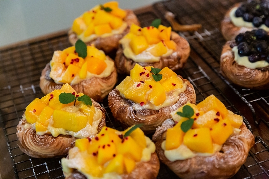 阿璇推薦小鹿家必買人氣商品絕對是可頌!!!尤其到了草莓產季,限量的草莓可頌絕對是秒殺,沒有提早來肯定是買不到的~阿璇這次來的時候看到的是當季的芒果塔可頌和藍莓塔可頌,看起來也是超誘人的~