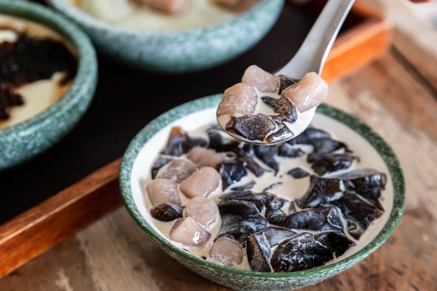 除了豆花,也要吃他們的仙草和芋圓,滑嫩Q彈的仙草搭配芋圓一起吃下的口感超過癮!夏天來上一碗,一整個舒服~