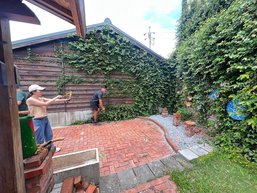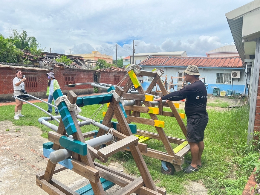 透過一些互動遊戲,讓整個藝術聚落巡禮更顯得有趣,跳格子,丟沙包,套圈圈,打彈弓,投石機,這裡讓許多兒時的充滿古早味的遊戲再次呈現出來
