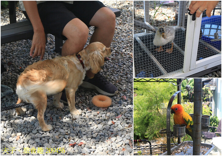 喜歡小動物的朋友,可以在庭園與店狗「貝貝」、鸚鵡「Money」與寵物鴨互動。