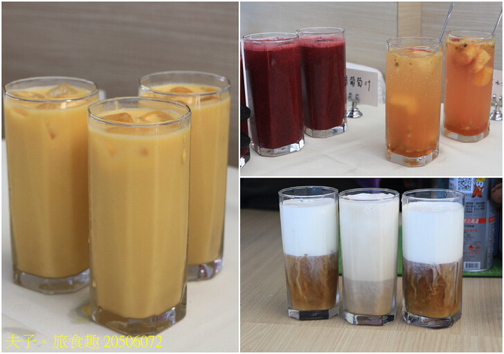 飲品除各式咖啡、紅茶外,特色飲品有綜合水果氣泡飲、南瓜豆漿、樹葡萄汁等。