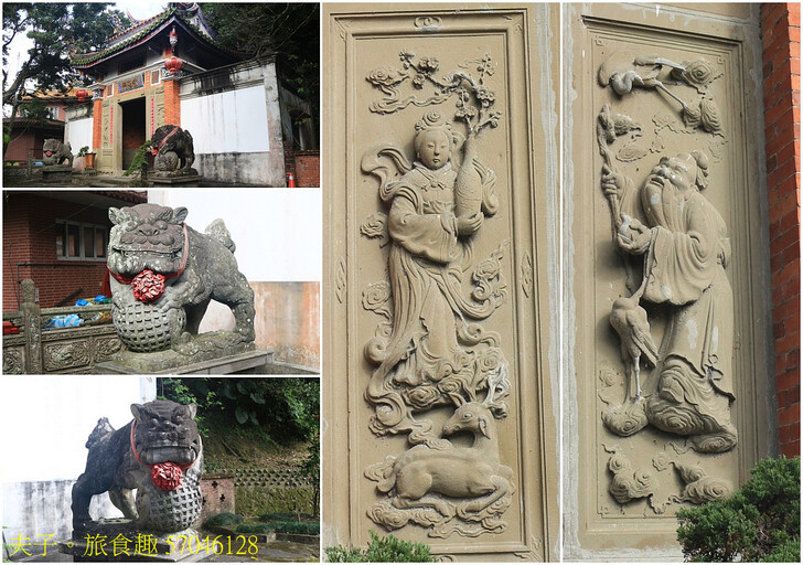 獅頭山,因其山形酷似一隻蹲踞的雄獅而得名,獅頭部分以勸化堂最早建成 (日治時期明治34年 (1901)),之後又陸續增建,有勸化堂、輔天宮、開善寺、舍利洞、饒益院五大寺院及紫陽門、清虛門、道德門、淨土門、南天門五大山門。登山健走起點「紫陽門」建於日治時期大正五年 (1916) 是輔天宮的山門,屬穿堂式的獨立門樓,屋頂為重檐歇山式的建築。門樓正面左右兩片「身堵」龍邊是南極仙翁右手持仙桃,一隻鶴立腳邊,一隻鶴翔於天,虎邊是麻姑持瓶花,一隻鹿跪坐腳下,是難得一見之雕刻佳作。傳統台灣所刻的公石獅皆張嘴咆哮,母獅則有張、有閉,紫陽門的公石獅很特別是難得一見的例外,是閉嘴的。有此一說,輔天宮主祀奉地藏王菩薩,一入紫陽門如入地府之界,人生的功過好壞早已留下紀錄,此時再自說利己之言又何益,所以石獅閉口不語。