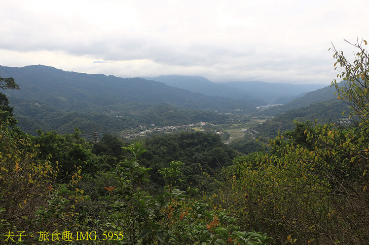 開善寺殿前廣場,居高臨下視野遼闊展望頗佳,山谷間中港溪蜿蜒流過,聚落建築歷歷在目,極目可見遠處的南庄老街區。