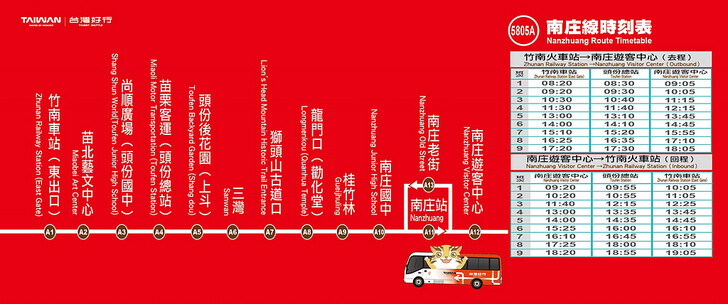 台灣好行南庄線 (5805A) 路線圖與時刻表。