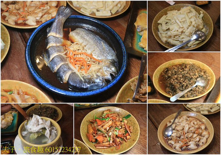 在四炆四炒傳統客家菜中,客家小炒、梅干肉、薑絲大腸、炆桂竹筍、福菜肉片湯都是老金龍飯店必點菜色。炆桂竹筍採用南庄桂竹筍,用當日現殺現燙的雞油文火燜煮,清甜爽口不油膩。鱒魚是苗栗南庄的重要特產,養殖業者利用南庄海拔 2,220公尺高加里山發源的清涼河水養鱒,來南庄一定要品嚐鱒魚的美味。老金龍飯店的清蒸鱒魚使用肉質最細嫩,每隻12到13台兩重的每日現殺鱒魚,搭配黃豆醬、糖、蠔油、多款醬油入鍋蒸煮,肉質肥美鮮嫩。