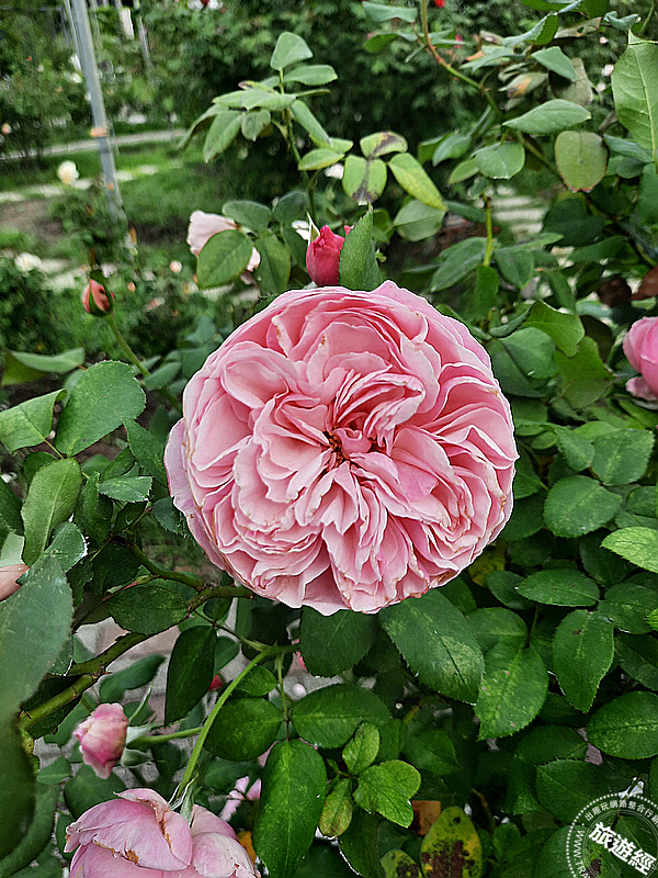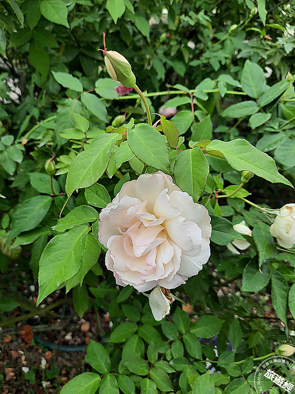 Madame Antoine Rebe及白櫻鏡,點綴小徑,紅白花海相輝映