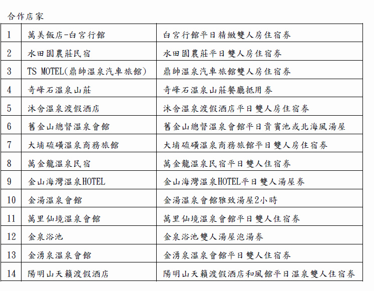 步驟一:走訪金萬里:到金山萬里溫泉區任一家合作的溫泉店家或溫泉公園,享受泡湯、住宿或消費。